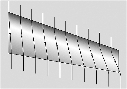 В чем же положительная суть стреловидного крыла, то есть за счет чего оно позволяет отодвинуть момент наступления волнового кризиса и уменьшить величину волнового сопротивления? Для объяснения может быть рассмотрена картина скольжения прямого крыла большого (теоретически бесконечного) размаха.