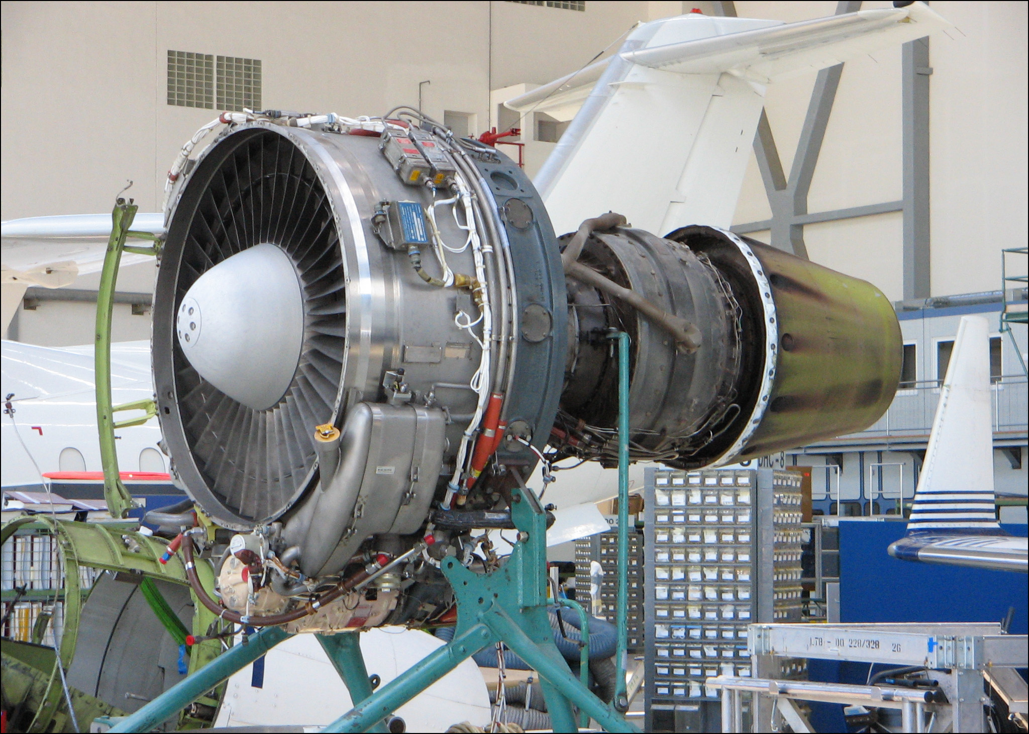 Турбовентиляторный двигатель обычно можно без труда отличить от других ТРД, в том числе и от ТРДД с малой степенью двухконтурности, по внешнему виду. Они частенько, скажем так, «короткие и толстые». Этакие бочонки на пилонах 🙂 (справедливости ради добавлю, что это не правило, но все же… :-)).